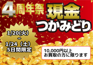 1/20(火)~1/24(土)の5日間に1万円以上お買取成約の方に参加いただけます!