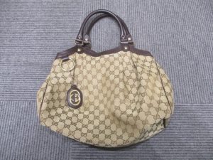今回は GUCCI グッチ ハンドバッグ GGキャンバス ロゴチャーム トートバッグ です。