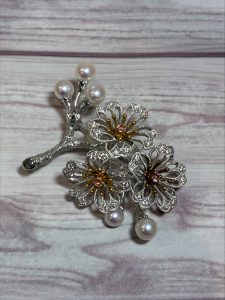 桜をモチーフにしたダイヤ、ピンクサファイアをあしらったミキモトのブローチです✨