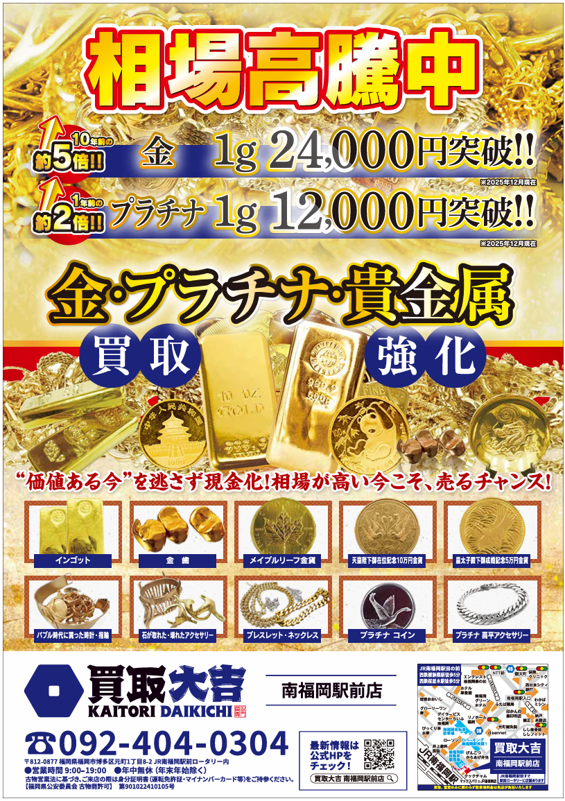 全国チェーンの買取大吉 南福岡駅前店は、