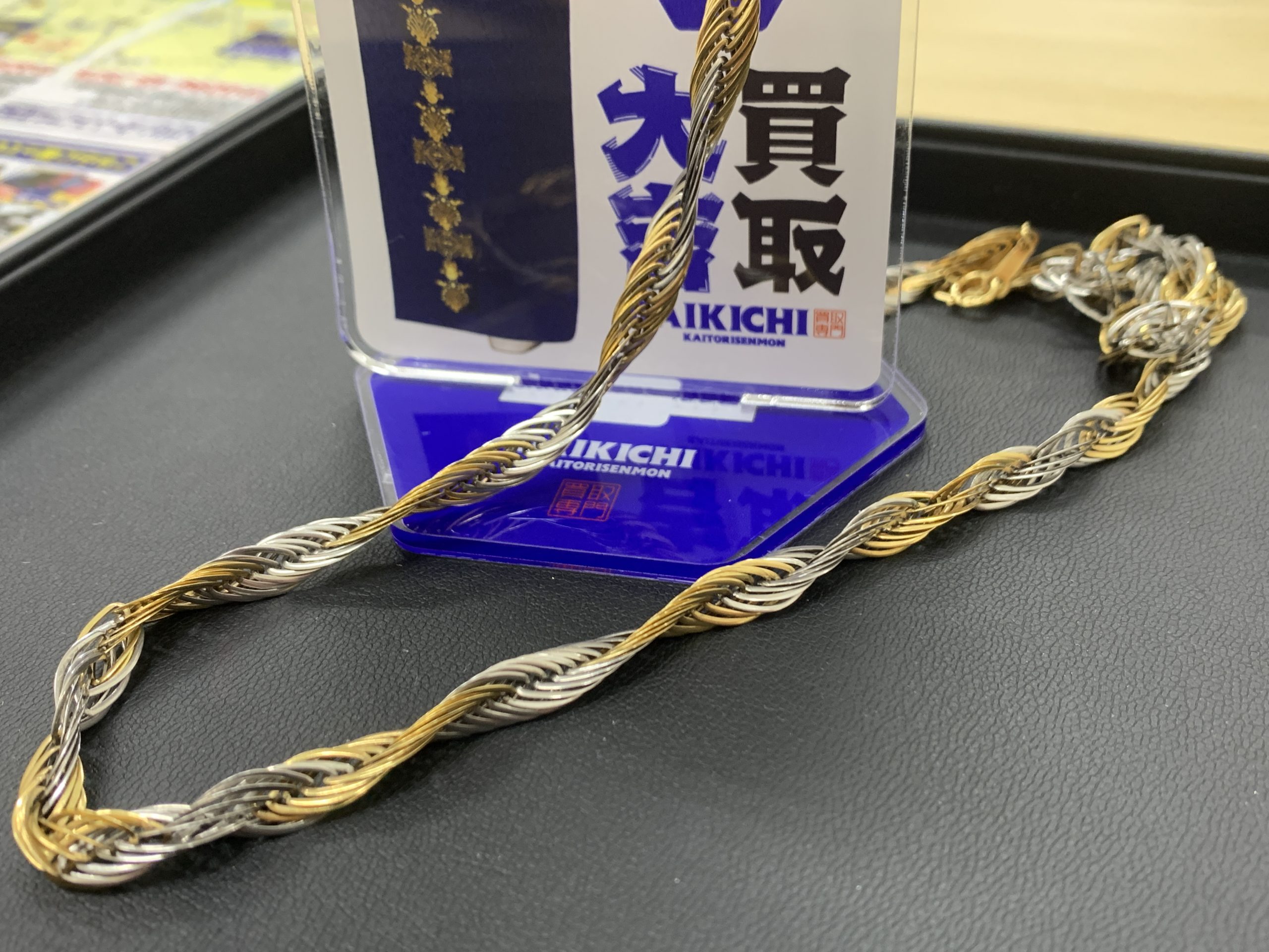 今回お買取したのは金とプラチナのコンビネックレスですが、金の延べ棒や金の置物、