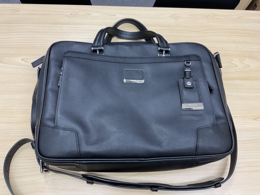 TUMIといえば、派手さはないものの、耐久性や収納設計、ファスナーの精度など、使う人ほど良さが分かるブランド。ポケット配置やPCスリーブの作り込みを見ると、「仕事道具」として本気で作られているのが伝わってきます。今回のお客様もその点を気に入って購入されたそうですが、最近はリュックタイプの方が動きやすく、バッグ自体を使い分けるようになったため、出番が減ってしまったとのことでした。
