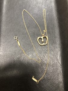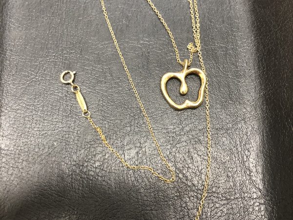 ティファニー(Tiffany) アップル ネックレス 750 のお持ち込みとなります。当店では、高級ブランドアクセサリー類は、他店対抗の高額レートでお買取りさせていただいております。西武新宿線沿線の方々が遠方より数多くご来店いただいておりますので、1点からでもご対応させていただいておりますので、ぜひ高級ブランドアクセサリー類は当店までお持ち込みください。このお品物も他店より高額の査定にて、お客様お喜びの高価買取となりました。