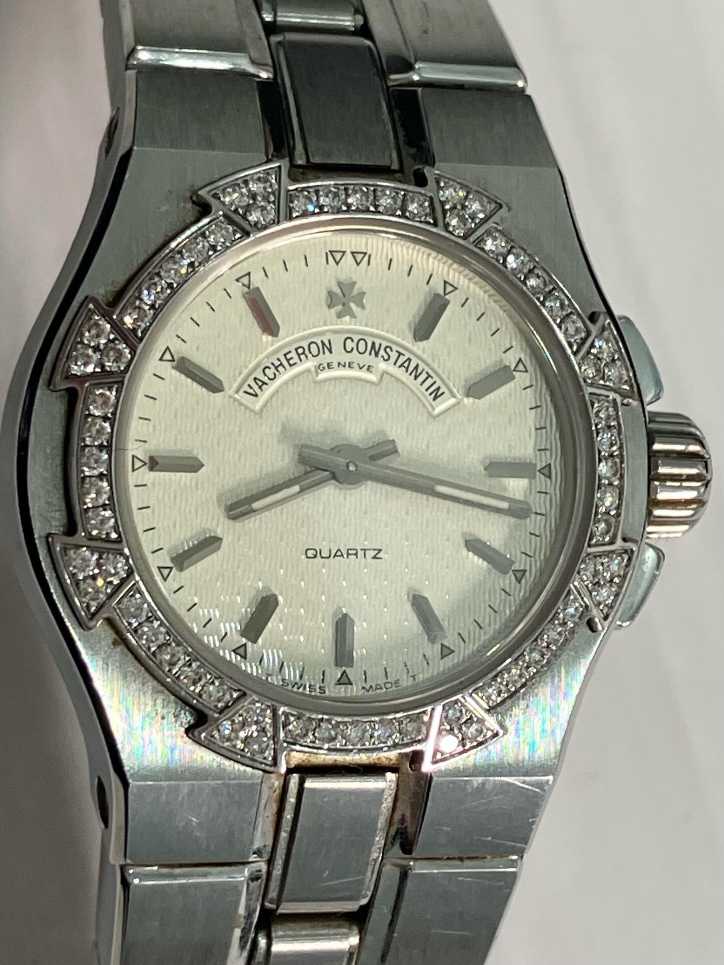 世界的に有名な高級時計ブランド、ヴァシュロン・コンスタンタンのオーヴァーシーズ レディースモデル(ダイヤベゼル付きのクォーツ時計)を高価買取いたしました💎