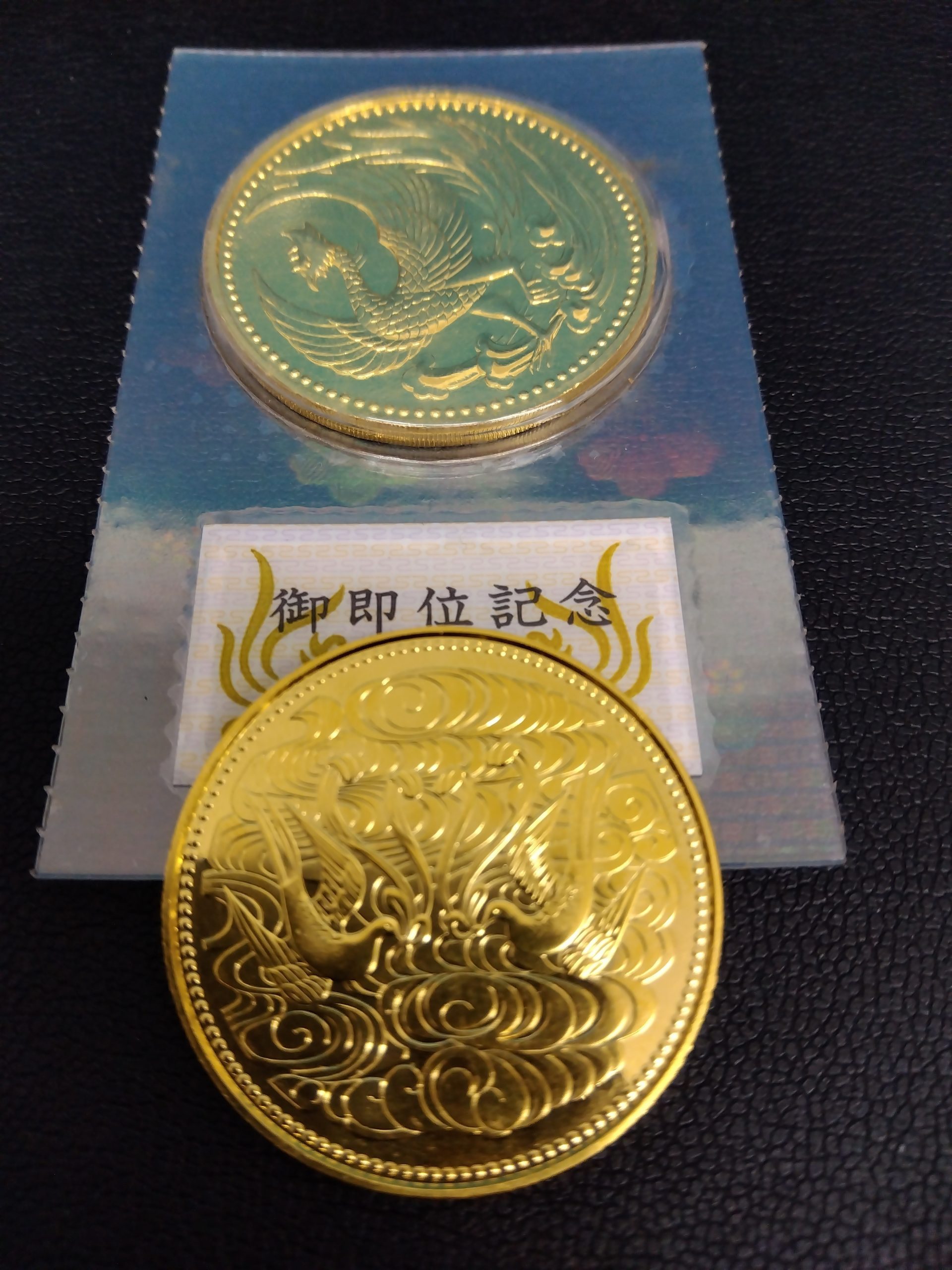 こちら天皇御即位記念10万円金貨と天皇御在位記念10万円金貨でございます。