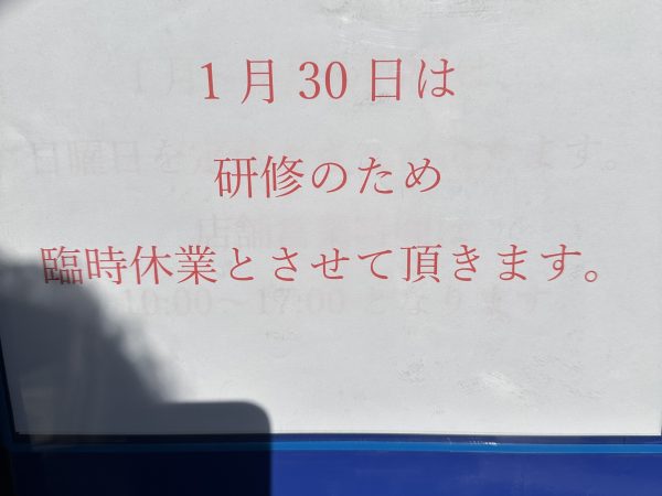 臨時休業のお知らせ 1月30日(金) 終日となります。 | 上石神井駅前店