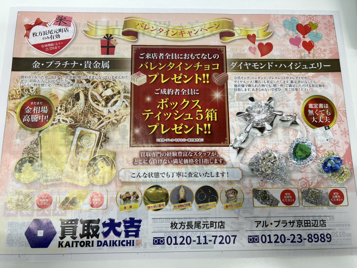 買取大吉» 店舗紹介» 枚方長尾元町店» 枚方長尾元町店 店長ブログ» 2月からバレンタインイベント実施します!A