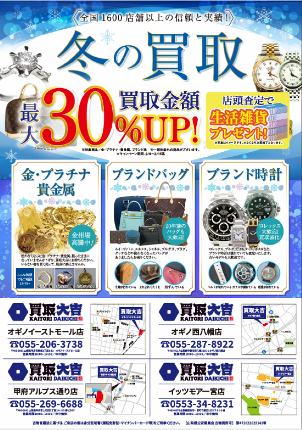 買取大吉» 店舗紹介» オギノイーストモール店» オギノイーストモール店 店長ブログ» 冬の買取祭!!開催!!