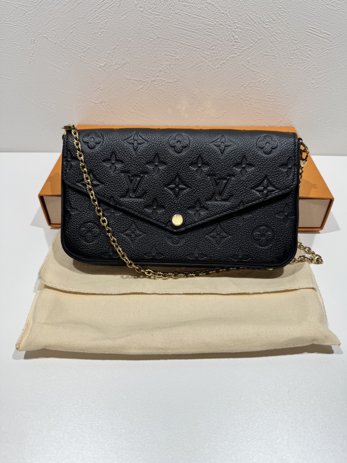 ポシェットフェリシーはチェーン付きでショルダーとしても使え、内側には取り外し可能なポーチが付属しているため、使い勝手の良さも評価が高いモデルです。状態や付属品の有無、市場での需要を丁寧に確認し、現在の相場を踏まえた査定を行いました。