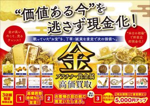 金・プラチナ・銀など貴金属の相場が高い今こそ、現金化の絶好チャンス。