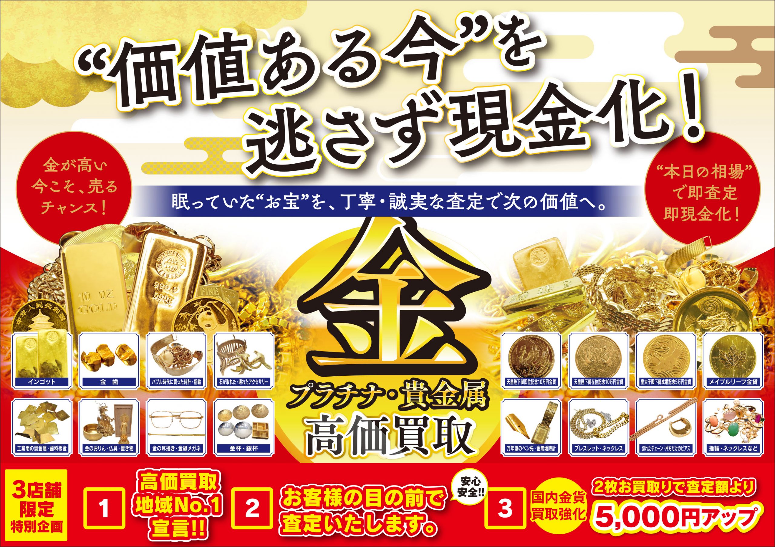 当店では 当日の最新相場で即査定 → 即現金化 が可能です。