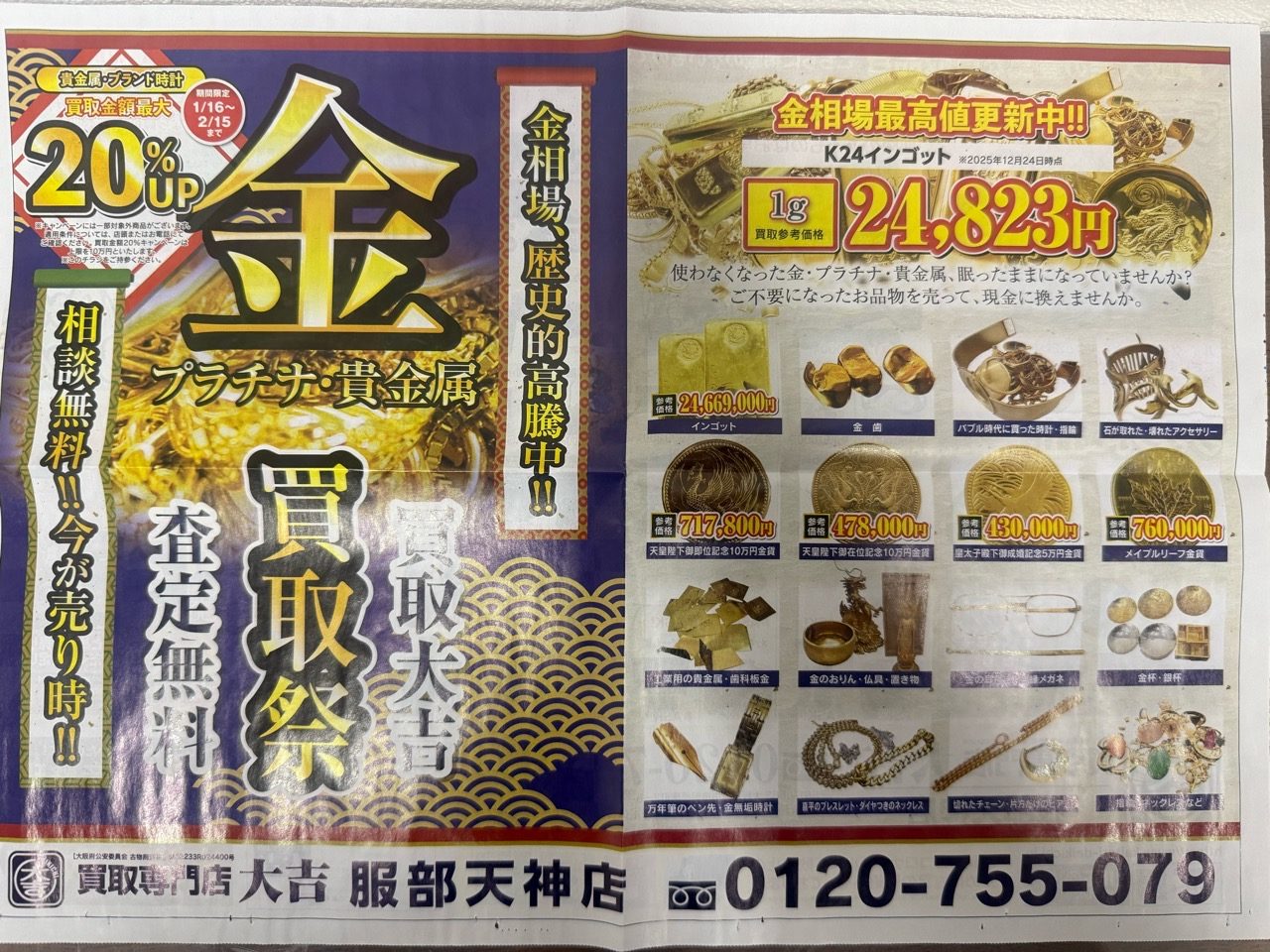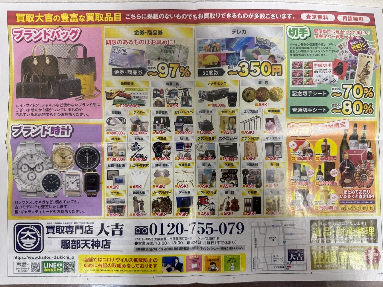 大吉服部天神店では無料の出張買取も行っております!