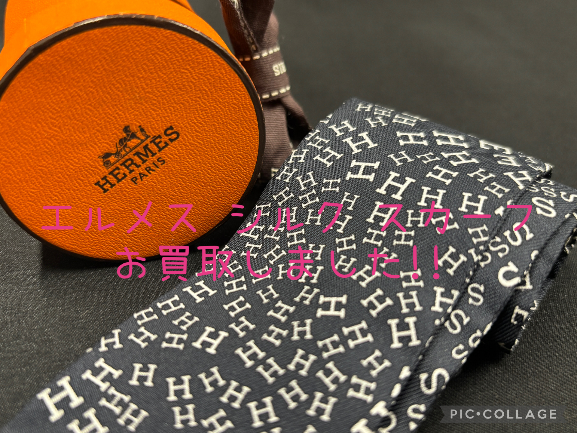 シルク生地にエルメスのロゴが散りばめられたお品物です。