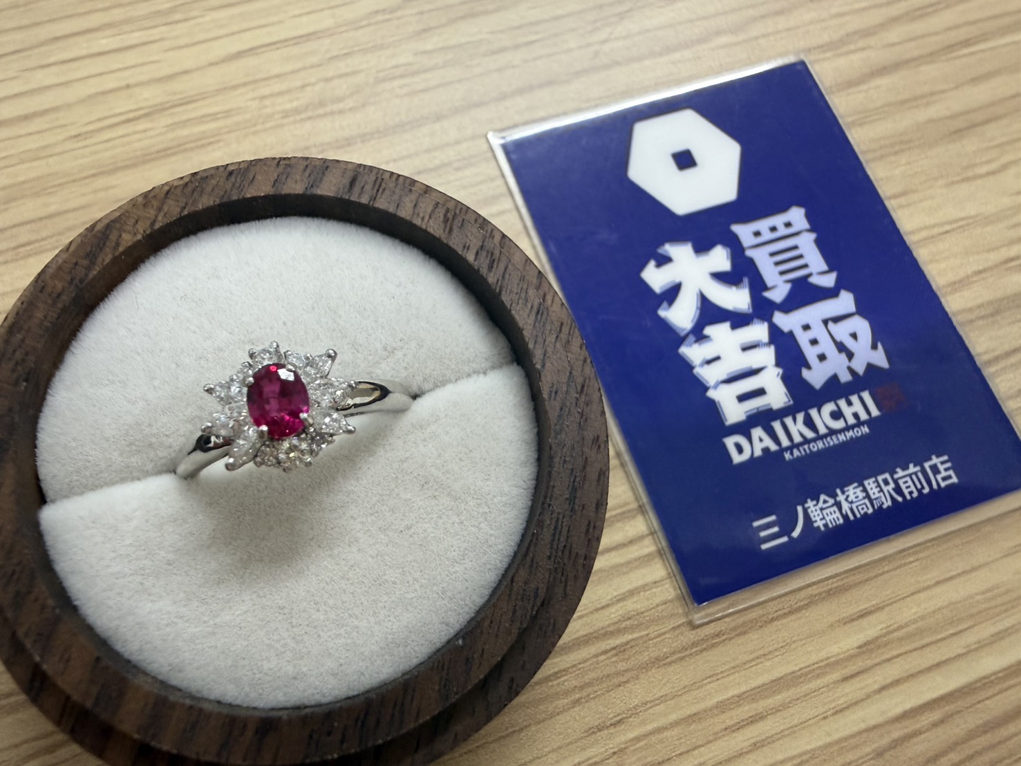 0.45ctのルビーとその周りにメレダイヤがついた華やかで存在感のあるリングをお買取りさせていただきました😲👏