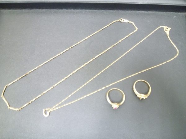 18金のネックレスやリングといったアクセサリーです。