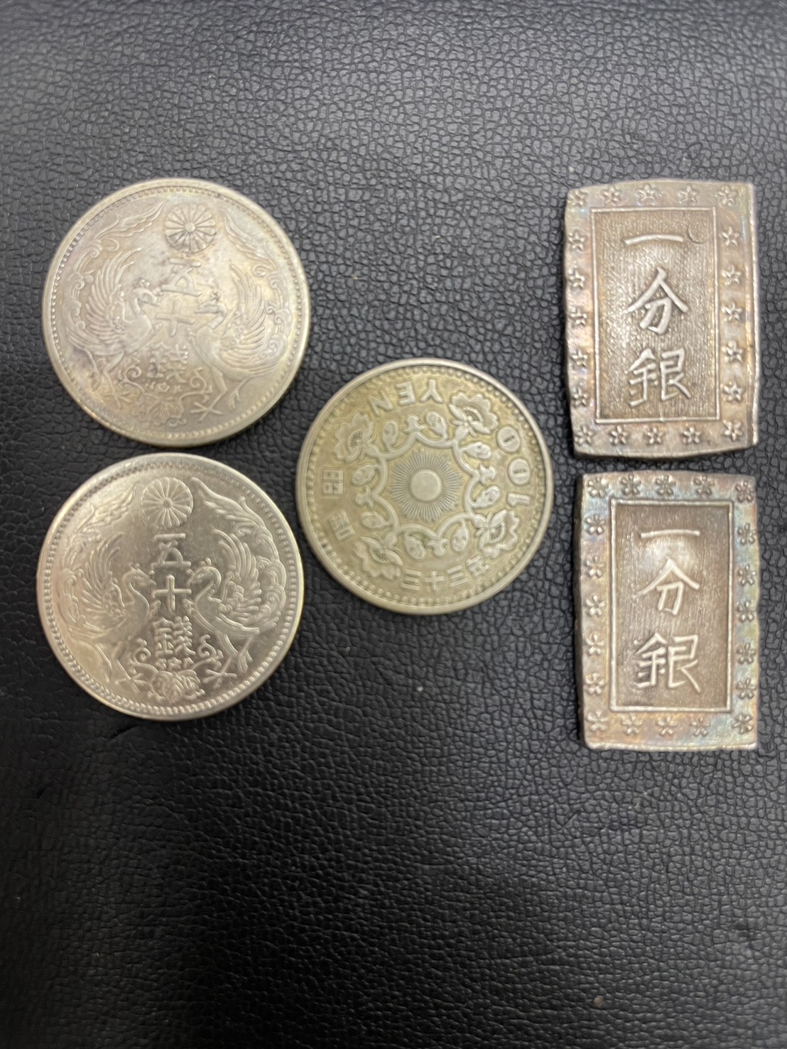 一分銀/小型50銭銀貨/100円銀貨といった、日本の歴史を感じる銀貨をお持ち込みいただきました。