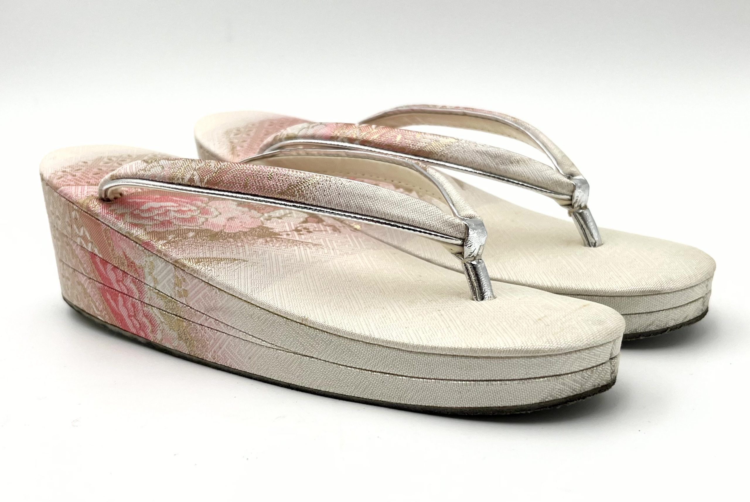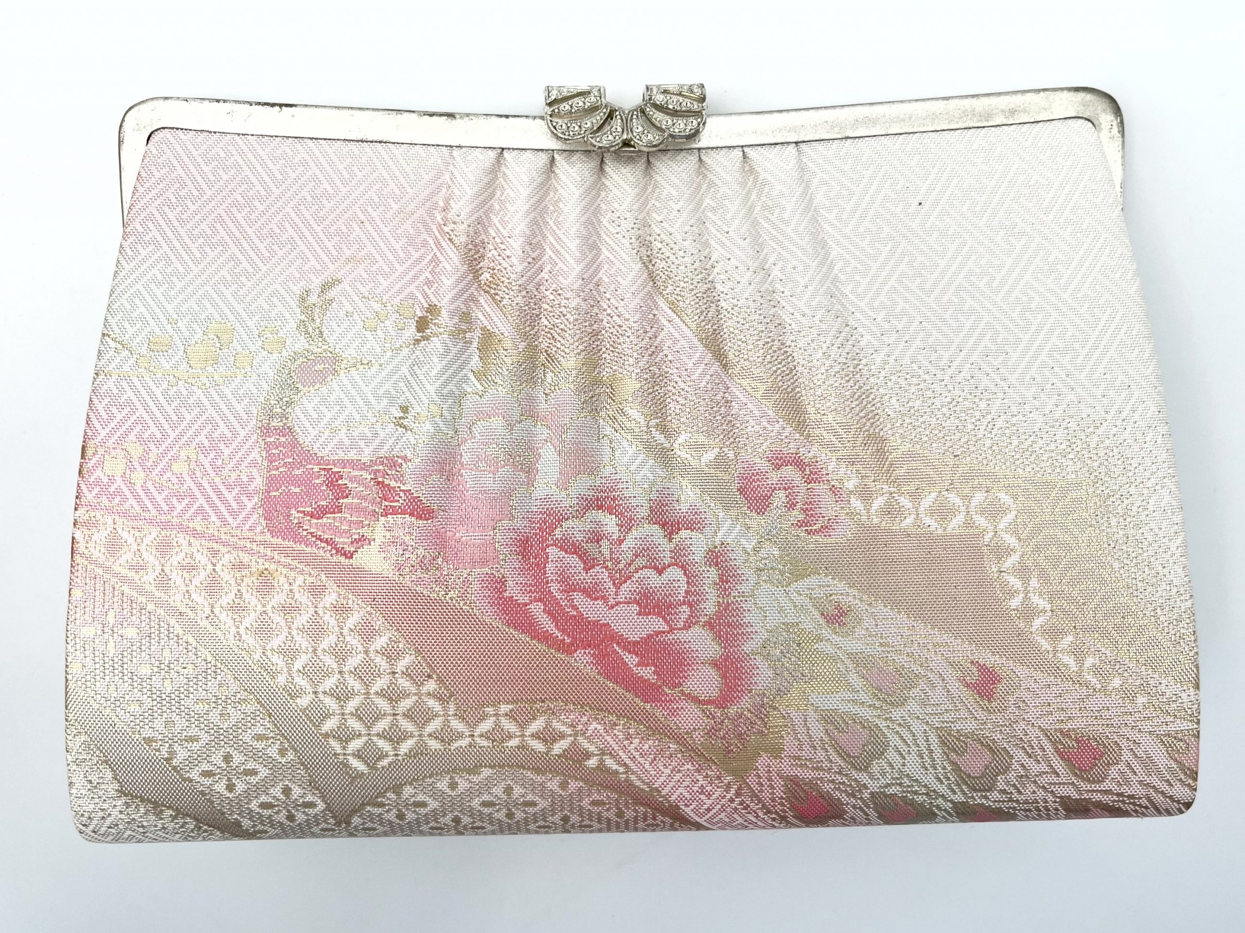 特筆すべきは、そのコンディションの素晴らしさです。 草履の底面やバッグの内側まで拝見しましたが、大切に保管されていたことが一目でわかるほど状態が良く、金具の輝きも失われていません。