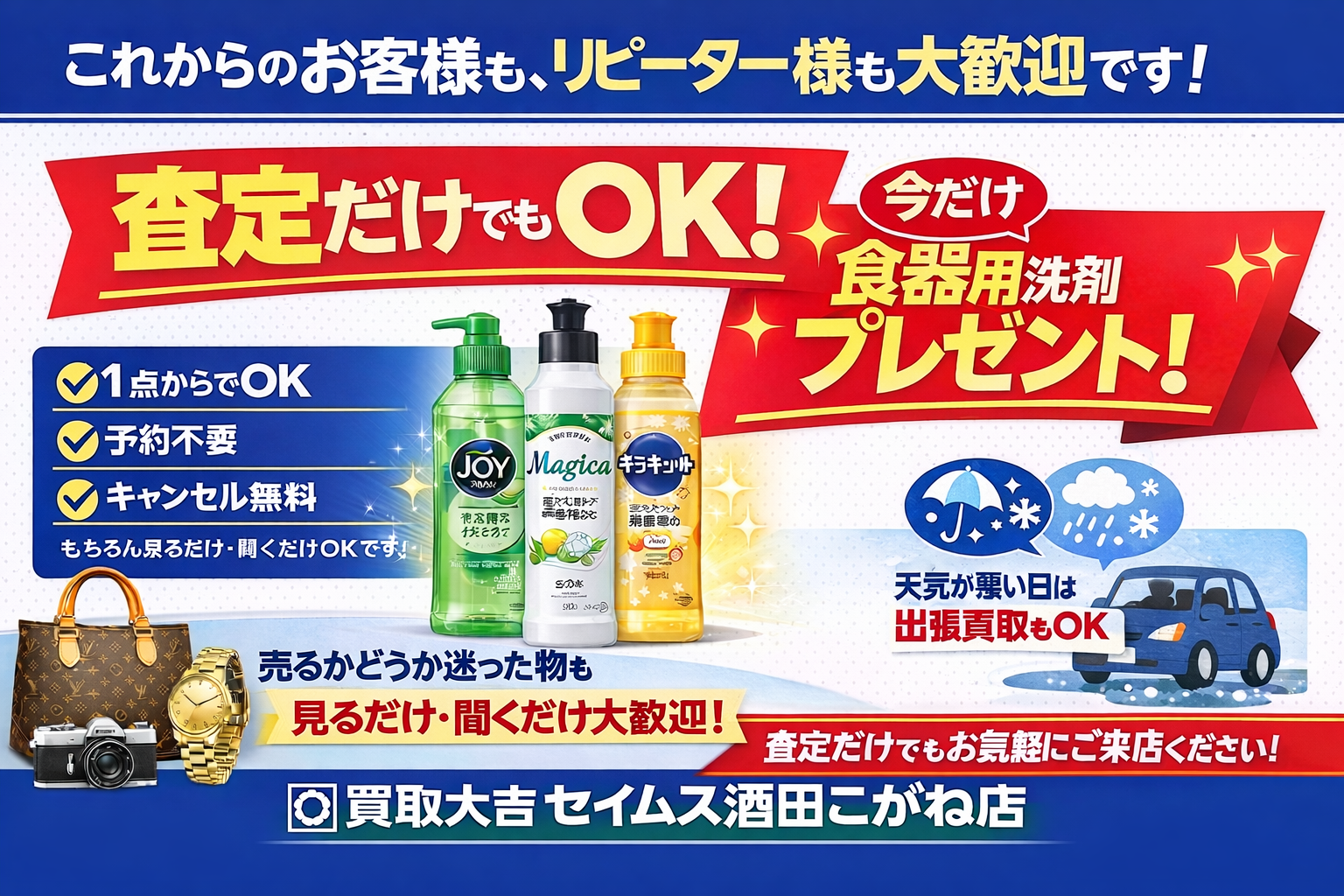 酒田市で初めて買取店を使う方へ|査定だけでも大歓迎&洗剤プレゼント実施中 | セイムス酒田こがね店