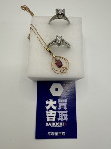ルビーの金ネックレス、プラチナのダイヤリングをお買取させて頂きました。