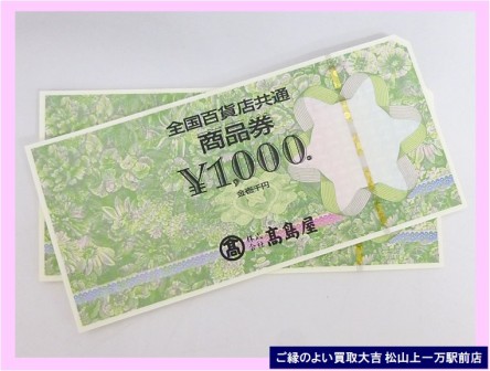 全国百貨店 商品券 は!                       ご縁のよい買取大吉 松山上一万駅前店におまかせ下さい♪ | 松山上一万駅前店