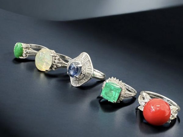鮮やかな色石リングと、上品に輝くプラチナリングをまとめてお持ち込みいただきました‼