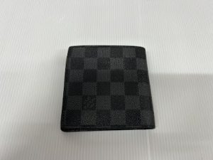 コンパクトな二つ折り財布でポケットにも収まりやすいサイズでダミエ・グラフィットの落ち着いた配色と丈夫なPVCコーティングキャンバスでオンオフ使えるデザインです😊 ご自宅で使用していないブランド品などあればぜひ一度お持ちください。