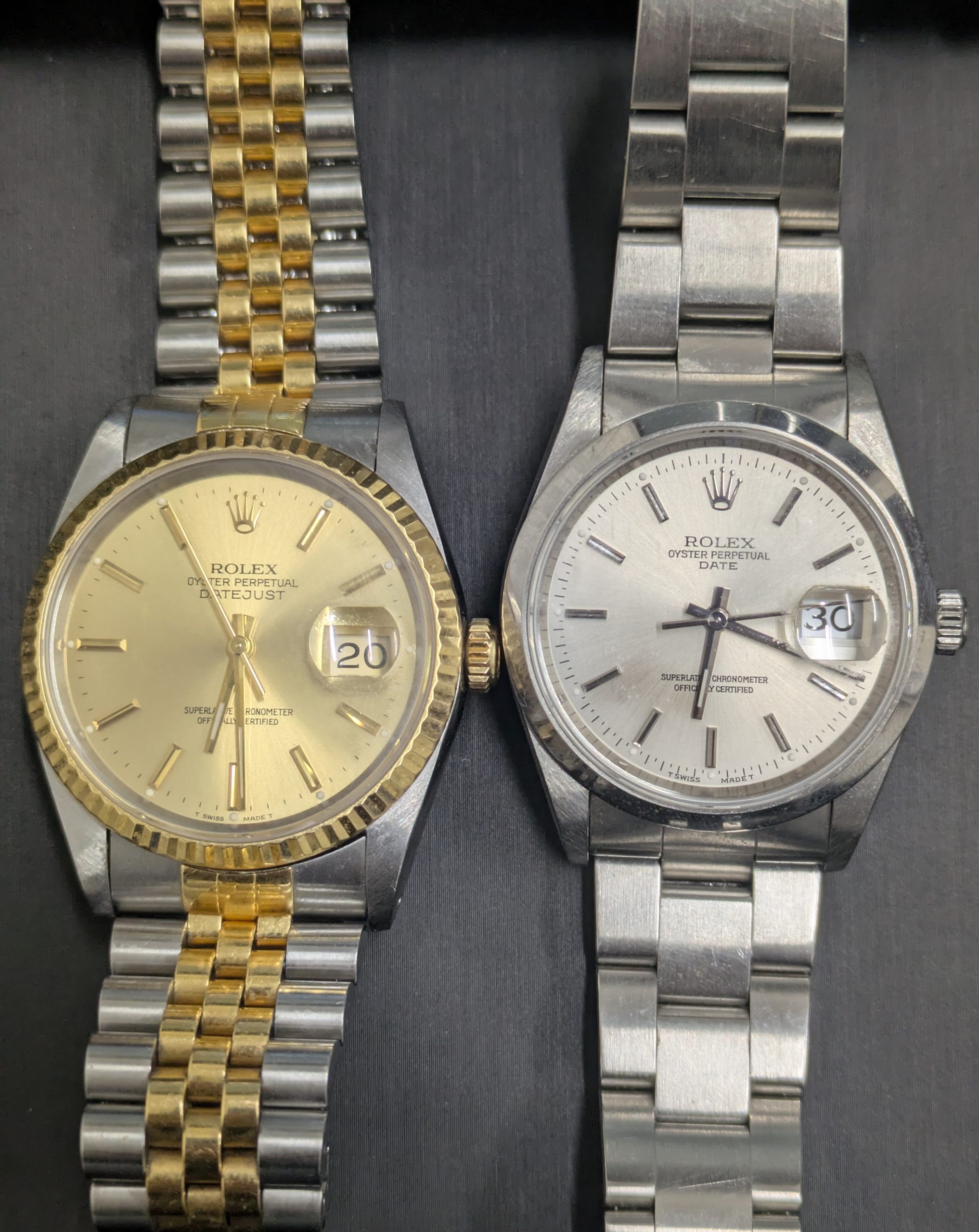 写真のデイトジャストとオイスターパーペチュアルデイト 共に往年の人気がございます。