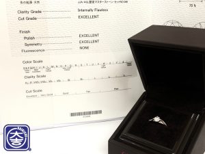 ダイヤモンドは「4C」と呼ばれる4つのポイントで査定する品物ですが、こちらはその4つ全てが最高ランクで評価された逸品!!