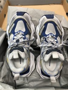 バレンシアガ( Balenciaga)カーゴスニーカー 41 ホワイト/ブルー のお持ち込みとなります。当店では、高級ブランドアパレル類は、他店対抗の高額レートでお買取りさせていただいております。西武新宿線沿線の方々が遠方より数多くご来店いただいておりますので、1点からでもご対応させていただいておりますので、ぜひ高級ブランドアパレル類は当店までお持ち込みください。このお品物も他店より高額の査定にて、お客様お喜びの高価買取となりました。