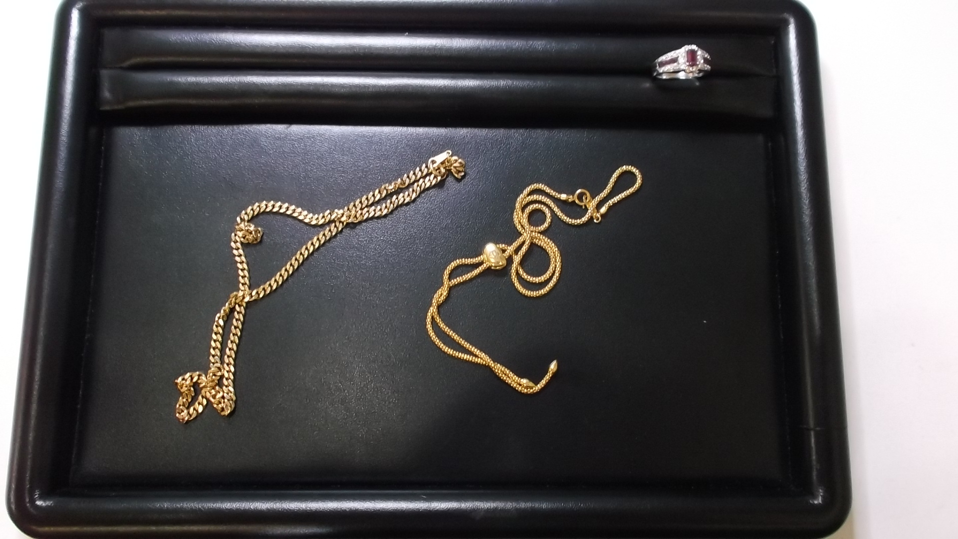金のネックレス、プラチナのリングとも高価買取させていただき、お客様にも