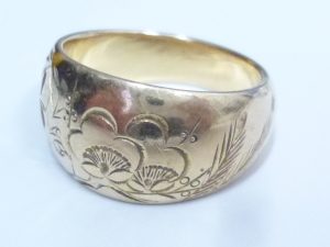 彫刻絵柄の18金指輪のお買取りを致しました。