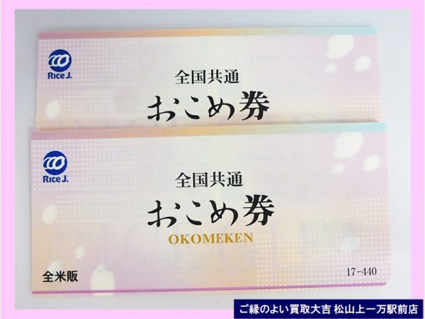 おこめ券 商品券 は!                        ご縁のよい買取大吉 松山上一万駅前店におまかせ下さい♪ | 松山上一万駅前店