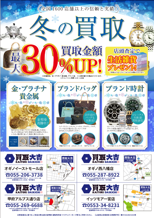 冬の買取祭!!開催!! | オギノ西八幡店