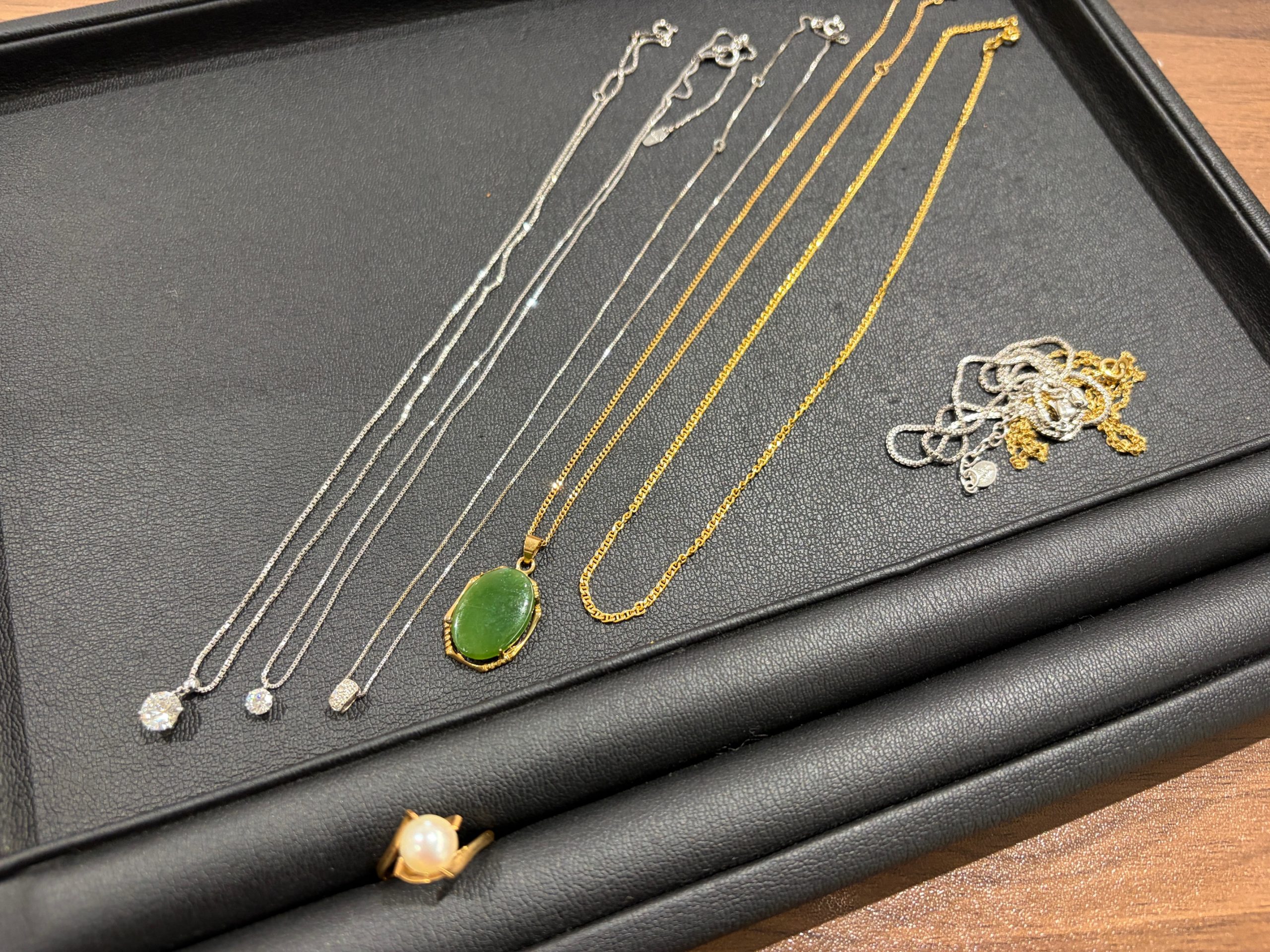 『1カラットのダイヤモンドネックレス、パールリングや金のネックレス』など