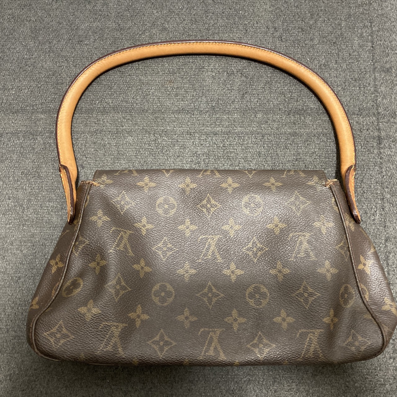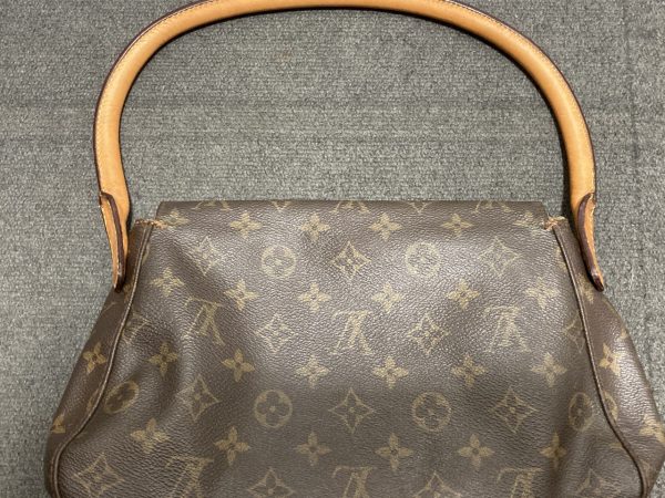 デザインはブランドを象徴するモノグラム柄のキャンバス地を使用し、太く弧を描くループ状の持ち手が特徴的な「ルーピング」シリーズの最小サイズです。