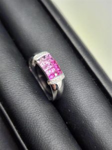 今回のお品は、ピンク系のスクエアストーンが整然と並んだ存在感のあるデザイン。