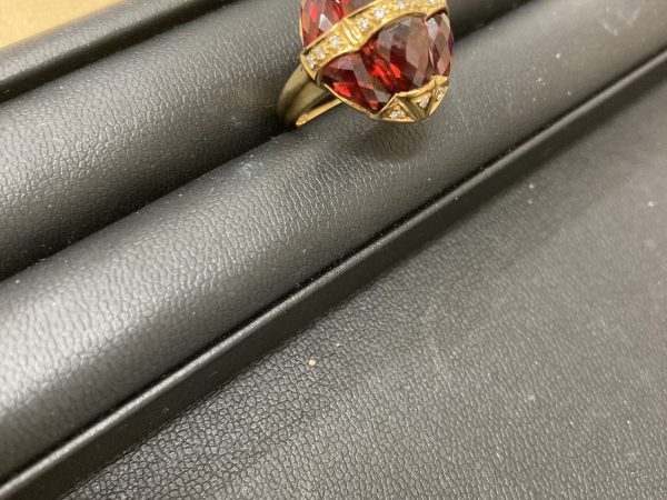 深紅の輝きを放つ大粒の石が付いたK18リングをお買取りさせていただきました💍