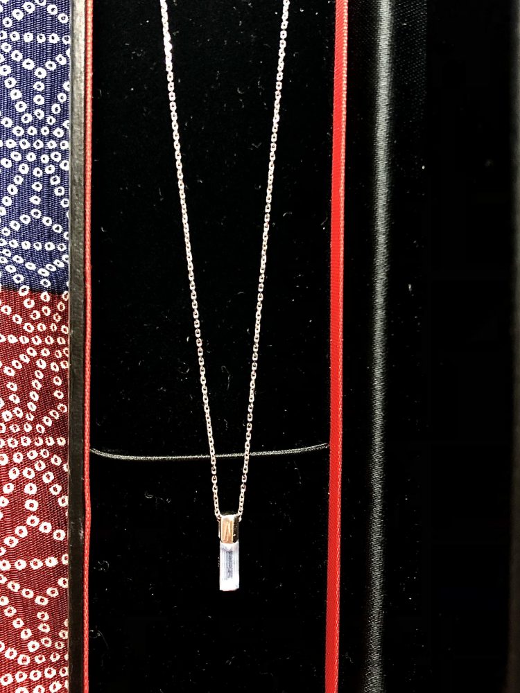 淡い青色の石が静かな存在感を放つこちらのネックレス。