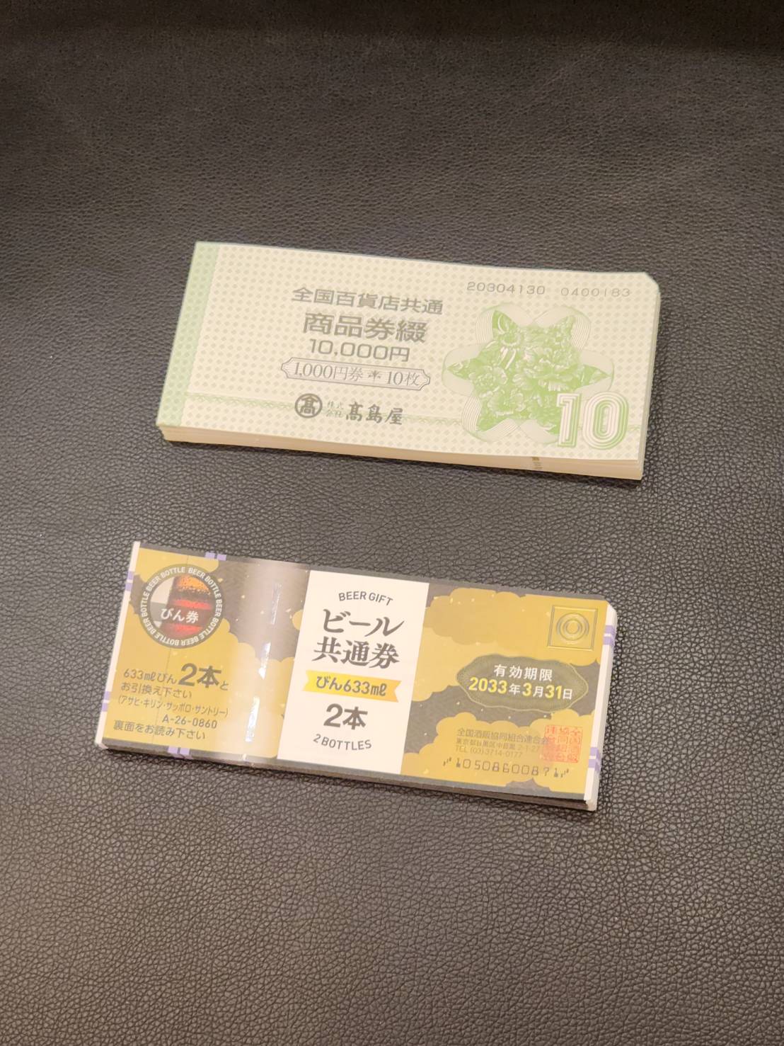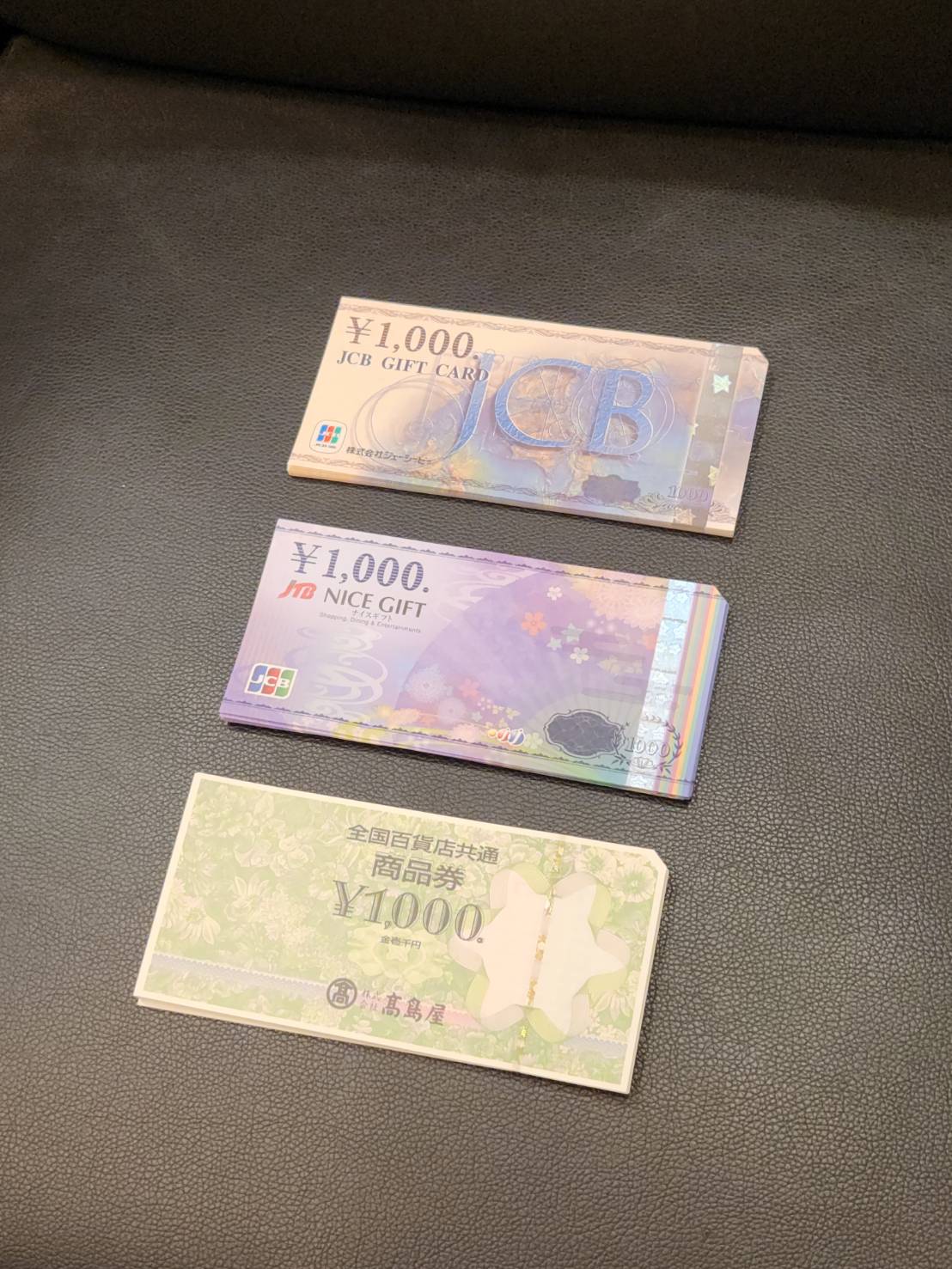 JCBギフトカード、JTBナイスギフト、全国百貨店共通商品券、ビール券をお買取りいたしました。