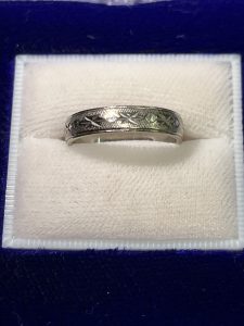 写真のお品物は、模様が細かく彫り込まれたリング。