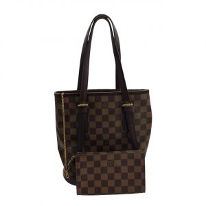 ルイヴィトンの人気ライン「ダミエ」の中でも、バケツ型のシルエットが特徴的なトートバッグです。