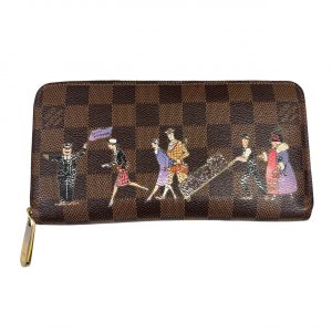 ルイヴィトンの人気ライン「ダミエ」のラウンドファスナー長財布に、遊び心のあるイラストがデザインされた個性的なモデルです。
