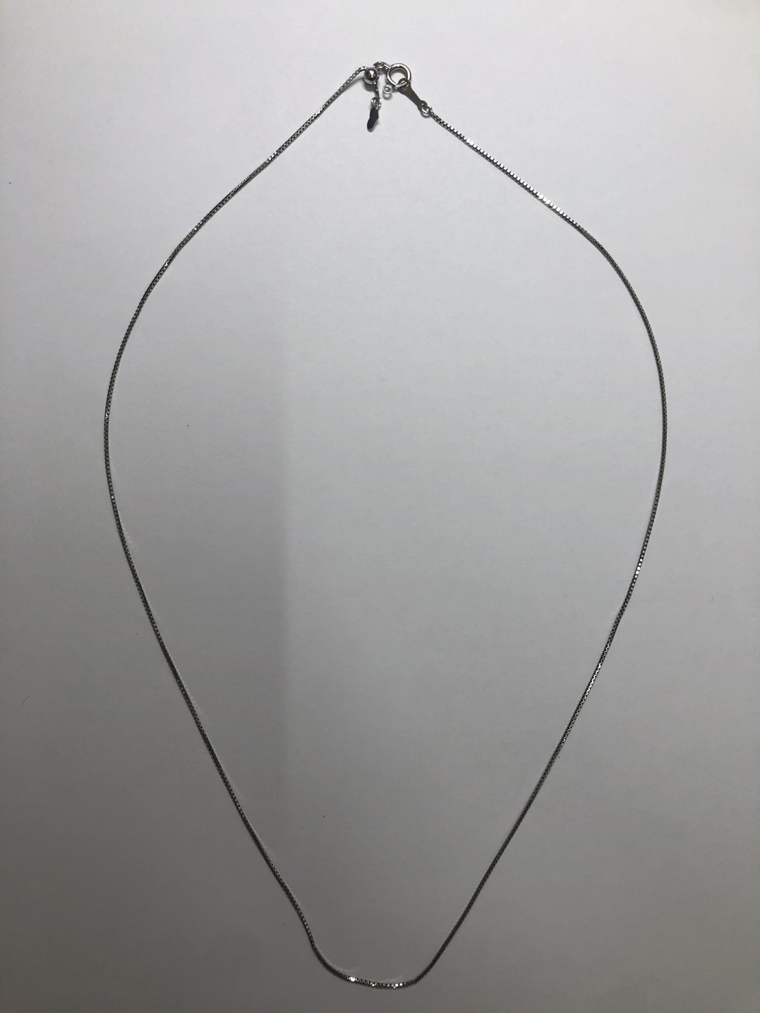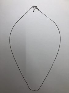 見た目は、プラチナやシルバーと同じ色をしていますが、こちらのネックレスはK18WG(ホワイトゴールド)です。