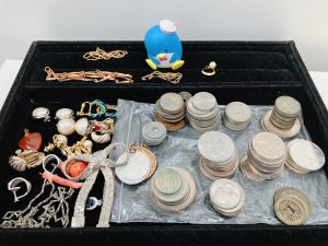 光り輝くK18ネックレスとたくさんのアクセサリー、古銭、記念硬貨をお買取りさせていただきました🍀