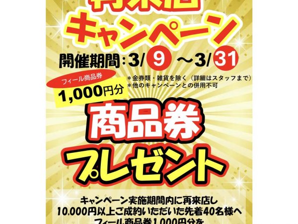 🎉 再来店キャンペーン開催中! 🎉