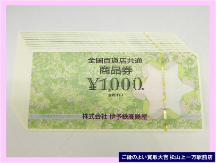 買取大吉» 店舗紹介» 松山上一万駅前店» 松山上一万駅前店 店長ブログ» 全国百貨店 商品券 は!                        ご縁のよい買取大吉 松山上一万駅前店におまかせ下さい♪