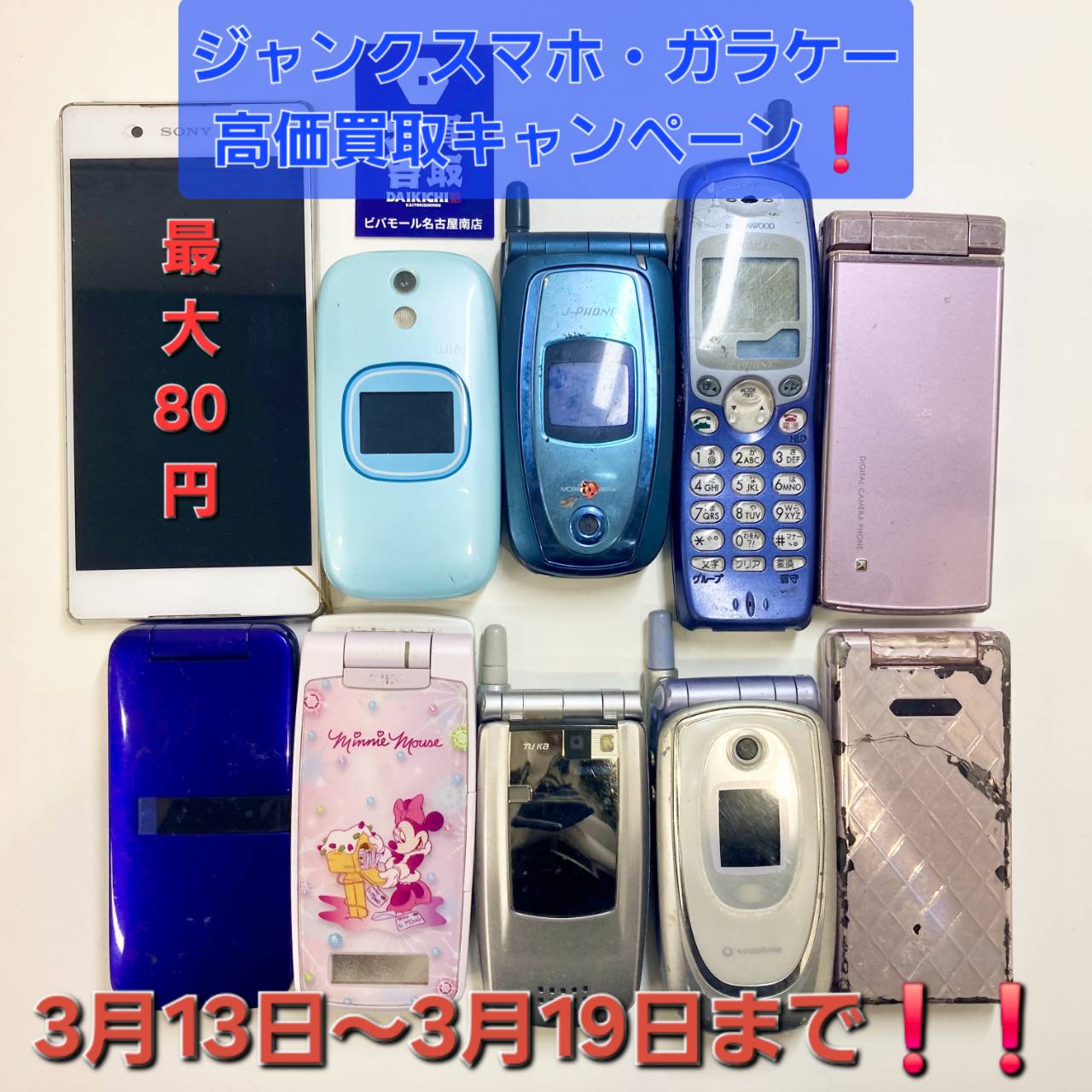 当店では、本日から3月13日~3月19日までジャンクスマホ・ガラケーの買取強化しております🌟🌟