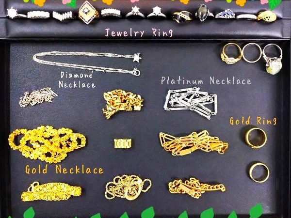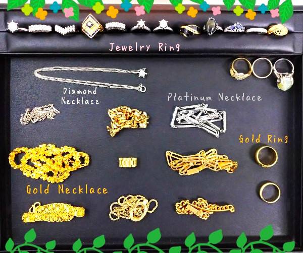 ゴールドネックレスやリング、プラチナ