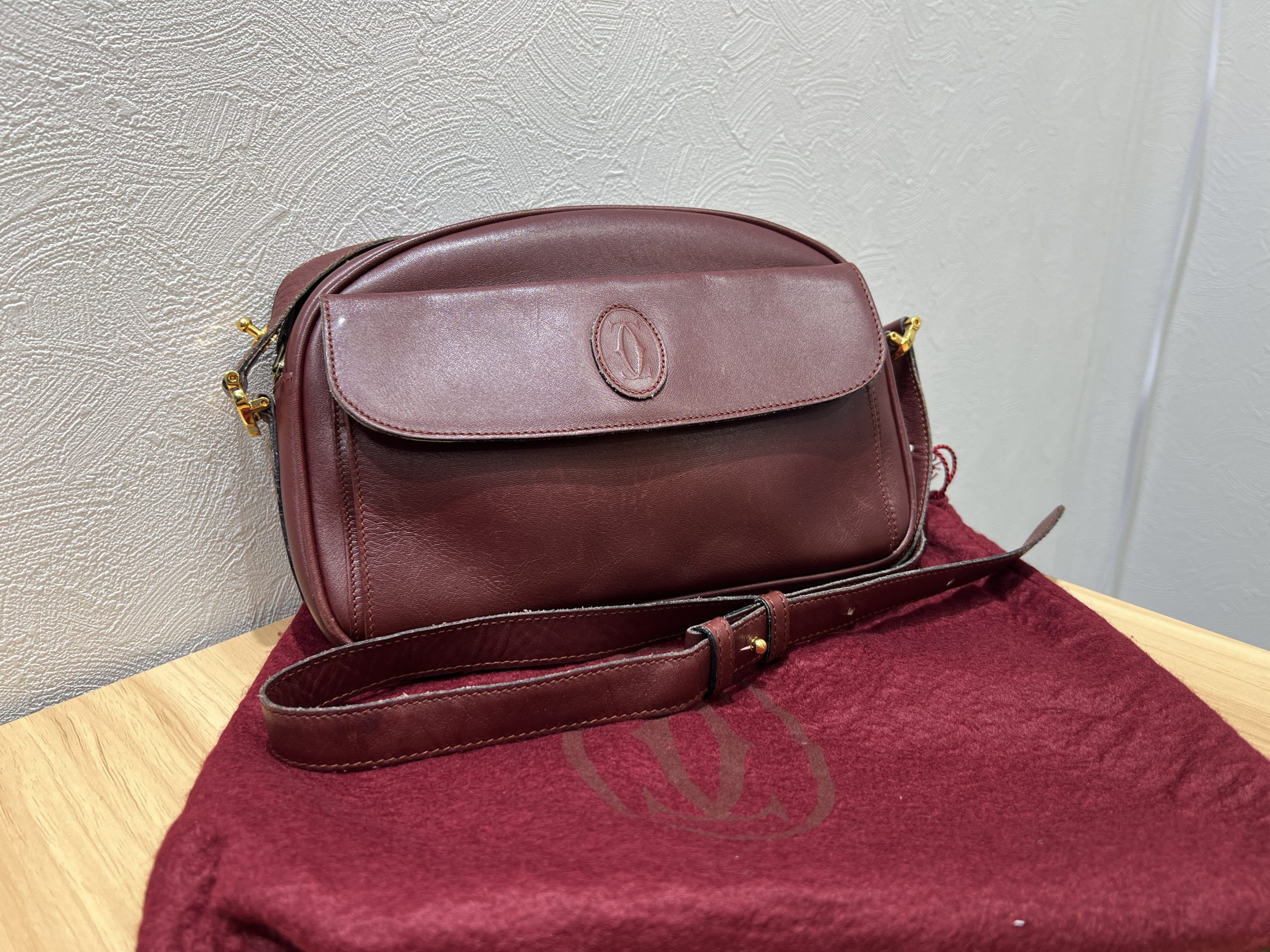 今回のお品物はカルティエらしい上品なボルドーカラーのバッグで、クラシックな雰囲気が魅力的なお品物でした。