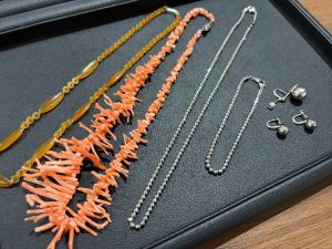 こちらは『珊瑚、べっ甲、プラチナネックレスなど』貴金属アクセサリーをお買い取りさせて頂きました。(^^)